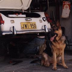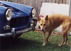 Hi, I'm Becky. I live in a suburb of Sydney in Australia. I live with my loyal servant, Eriks. Apart from barking at my neighbours, chasing cats, and going for long walks, the one thing I really like doing more than anything else is to go for drives in my MG Midget. There's just nothing quite like the wind in your hair as you drive down the street, and of course lapping up all the admiring looks from other dogs (and sometimes even from people) as I drive past them.